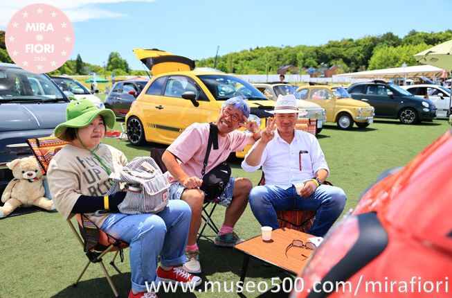 チンクエチェント博物館主催欧州車の祭典ミラフィオーリ2026クルマのある休日。愛車のまわりに椅子を並べて、机を出して、コー...