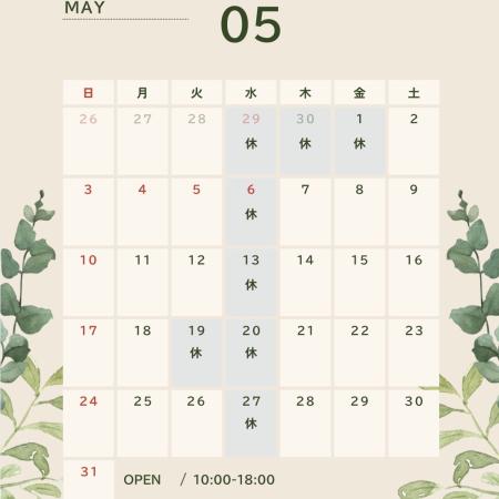 5月営業日カレンダー🍀