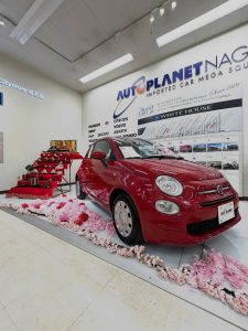 是非オートプラネット名古屋にご来店の際は、ひな人形と真っ赤な可愛らしいFIAT500の前でお写真を撮ってくださいね📸🌸