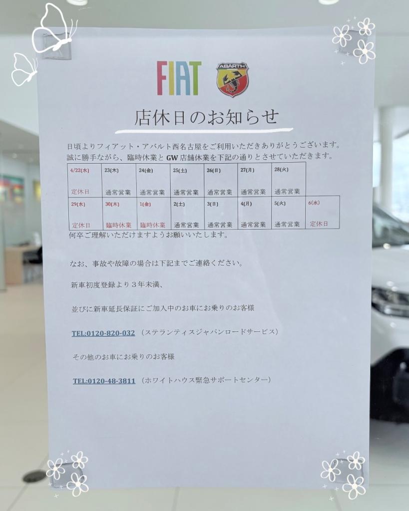 いつもフィアット/アバルト西名古屋をご利用いただき、ありがとうございます🌟