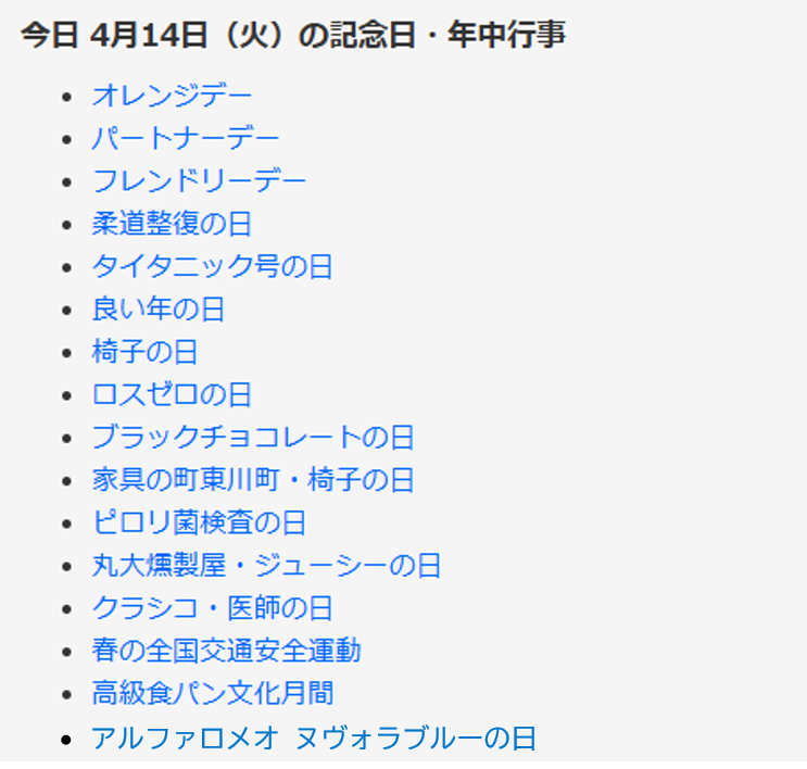 414と言えば、4月14日。でも、一番下の記念日は嘘です(笑)。で、414のエビデンス。4月14日に...