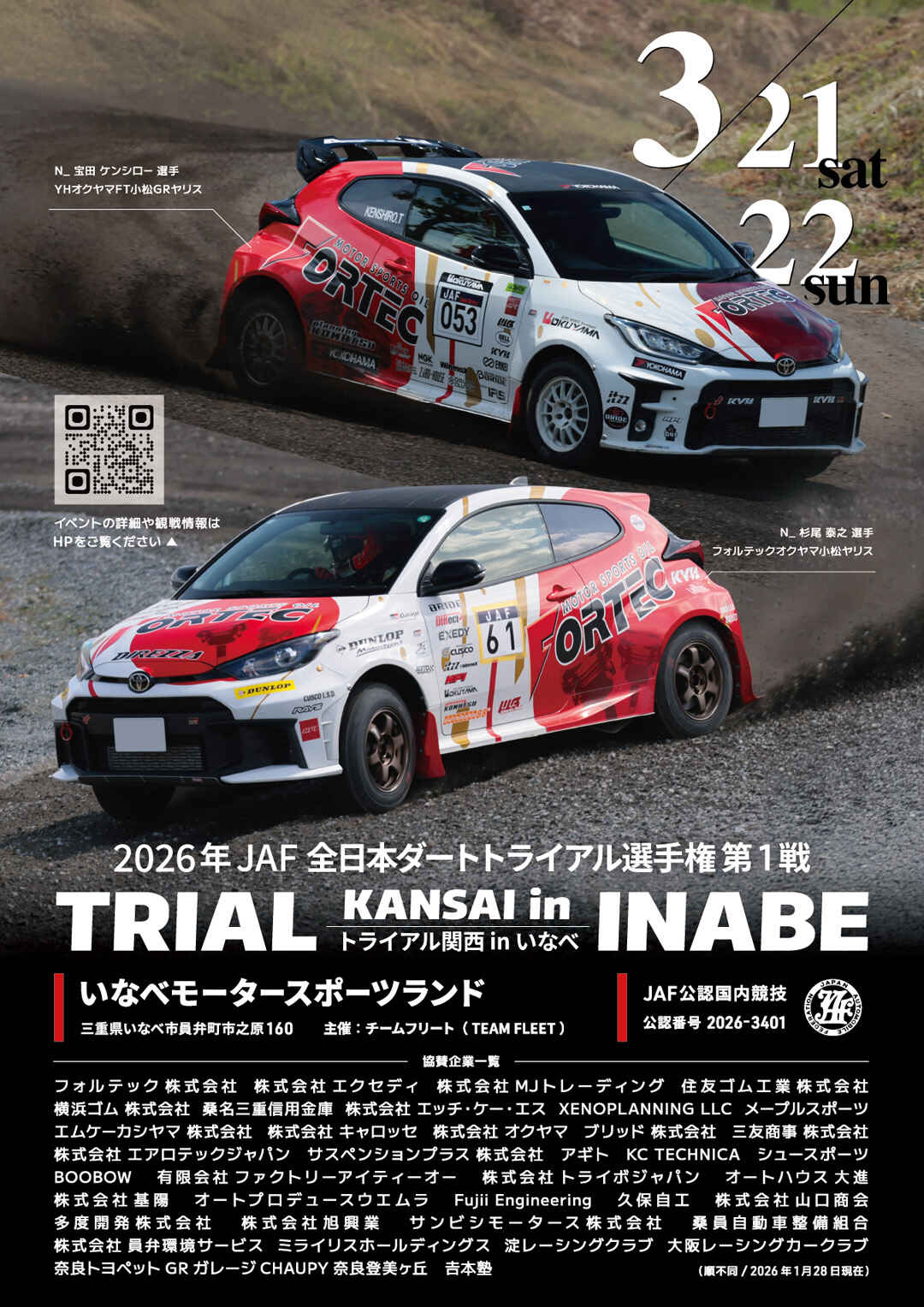2026年JAF全日本ダートトライアル選手権第1戦トライアル関西inいなべが、チームフリート主催にて三重県いなべ市いなべモータ...