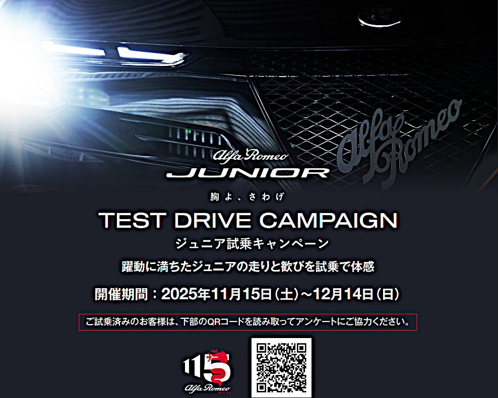 JUNIORの試乗キャンペーンが始まります…もっと見る