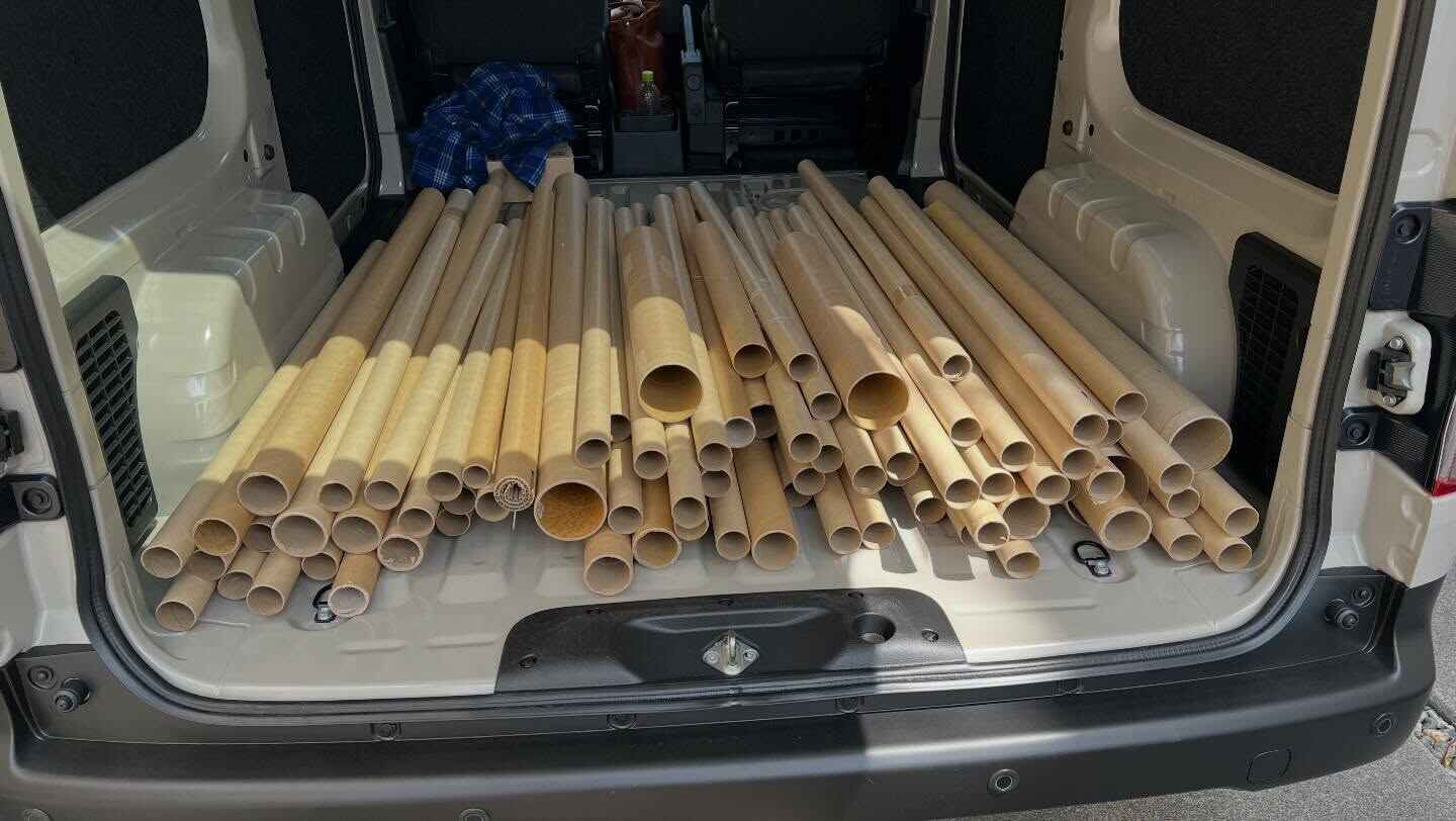 愛産商会さんが革の芯棒引き取ってくれるので、革の受け取りついでに持って行きます。車に積んでみると思っ...