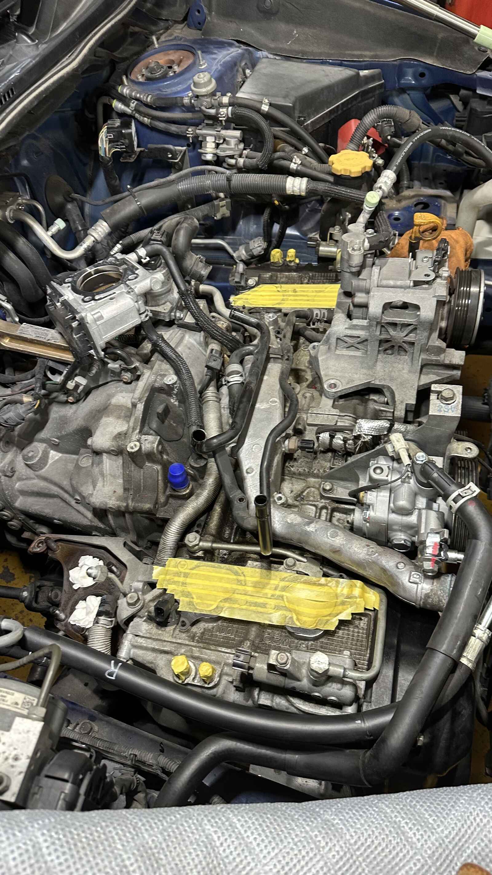 エンジン上部の左右バンクを繋ぐウォーターパイプ接続部(Oリング)不良によるクーラント漏れにて入庫です...