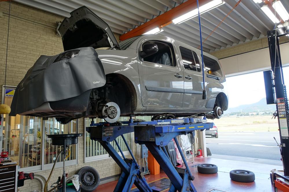 GRANDKANGOOは点検にてご入庫頂きました。オイル交換等をやりながら各部のチェック。ご依頼の右フロントフォグのぐらつき...