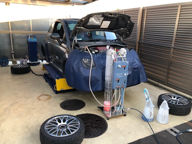 三重県のH様のフィアット500の入庫ですタイミングベルト交換とウォーターポンプ交換のご依頼です。…もっと見る