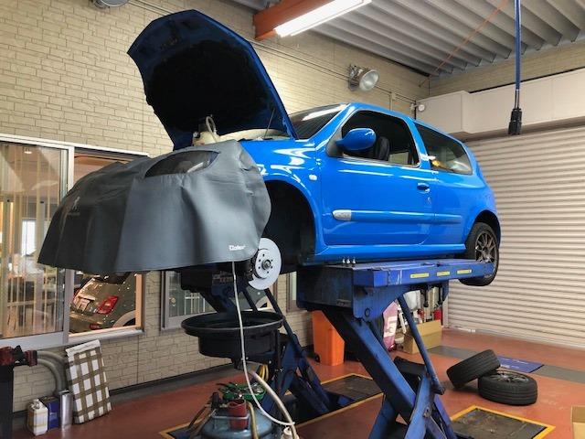9/10裏庭日記完結!!CLIOⅡ182teamの車検整備ようやく完成です。フロントブレーキ交換時に見つけたピストンダストの...