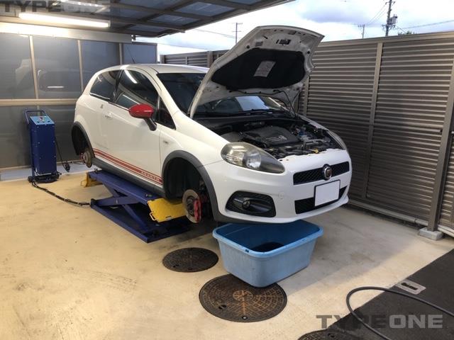 三重県のT様のフィアットHGTアバルトの入庫です突然ミッション不良により不動になったということでレッカー搬送されてきました。...