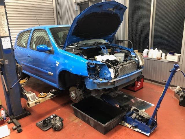 CLIOⅡ182もようやくスタートです。前廻りを色々分解してタイミングベルトSSTをセット!オルタネーターとタイミングベルト...