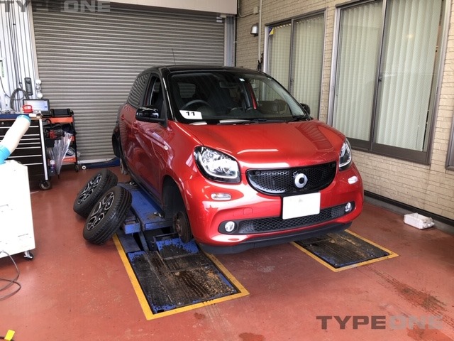 🇩🇪smartはタイヤ交換を追加で頂きました。プライマシー4にて作業開始です。前後でサイズが違う為同じ銘柄を探すのがちょ...