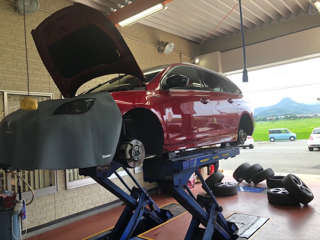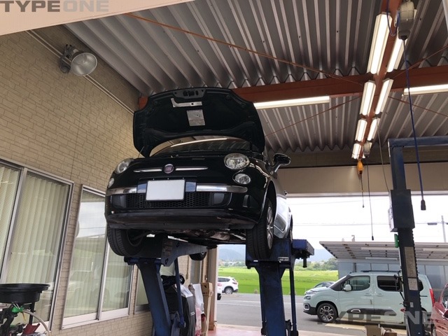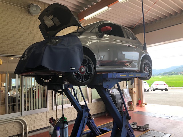 鮮やかなボディーカラーに下がった車高、OZホイールが素敵なアバルト595にステージ1メンテナンスの施工をおこないました。…も...