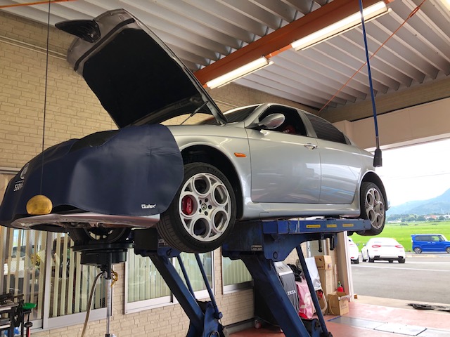 🇮🇹156GTAはオイル交換にてご入庫です。このデザイン素敵です。🇮🇹500は車検整備開始です。油脂類と消耗品がメイ...