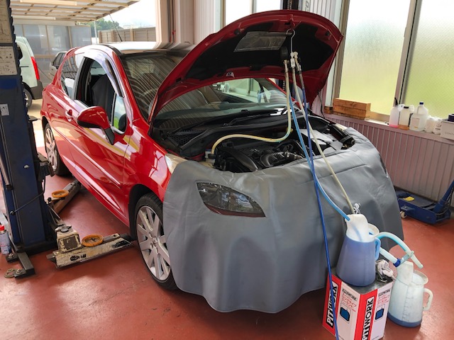 🇫🇷308車検整備開始です。油脂類、消耗品の交換をさせて頂きました。交換サイクルが昔に比べて早い気がしますし、顕著に不具...