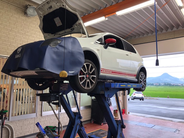 6/22裏庭日記朝は🇮🇹ABARTHPUNTOのオイル交換からスタートです。🇬🇧バンテージもバッテリー交換後テスター...