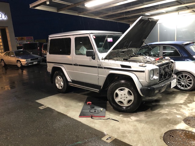 MBが2台。Gクラスは樹脂部やエンブレムの劣化などで交換作業中。追加が必要になり来週持ち越し~GLEは点検入庫ですがエンジン...