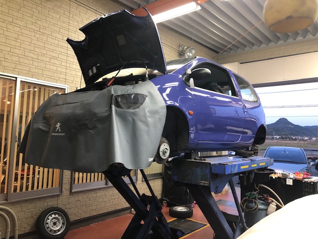 🇫🇷twingoは整備開始です。お疲れのリザーブタンク国内ラスト1個を手配してクーラント交換とあわせて交換致しました。交...