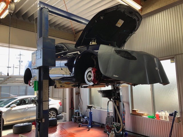 🇮🇹GHIBLIは車検整備開始です。毎回オイルフィルターの交換でオイルまみれになるのが何とかしたい所ですね😅ディーラー...