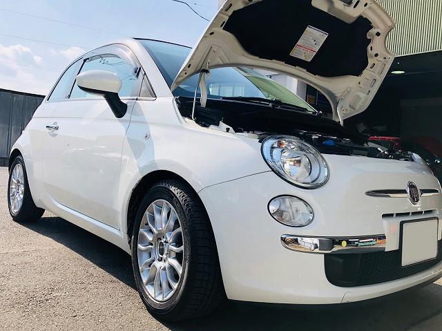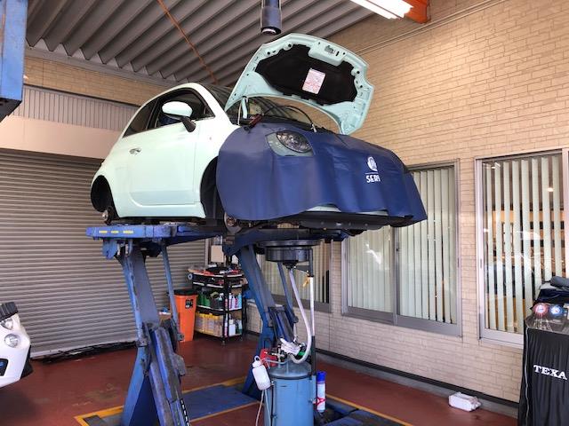 イタリア車🇮🇹は500の法定点検。タイミングベルトなどもしっかり目視点検してオイル交換を実施して完成です。日本車🇯🇵...
