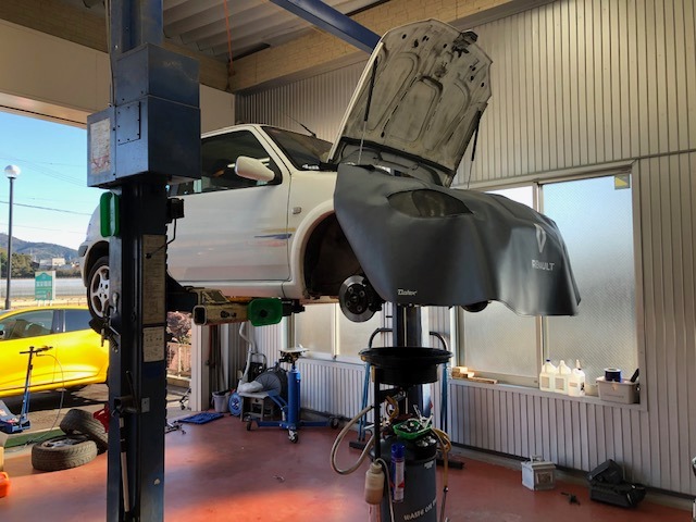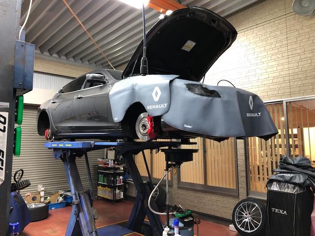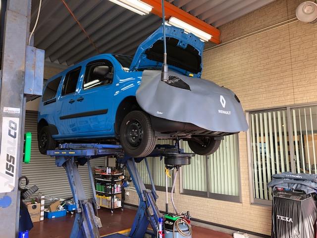 裏庭日記RENAULTだらけ🇫🇷GRANDKANGOOはエンジンオイル交換とスタッドレス履き変えでご入庫頂きました。暖冬...