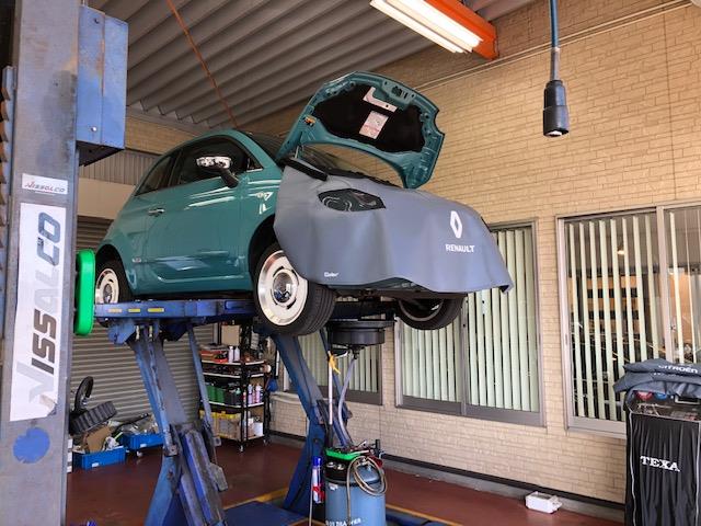 今日のイタリア車🇮🇹FIAT500Anniversarioはエンジンオイル交換にてご入庫頂きました。ハンドルのセンターズ...