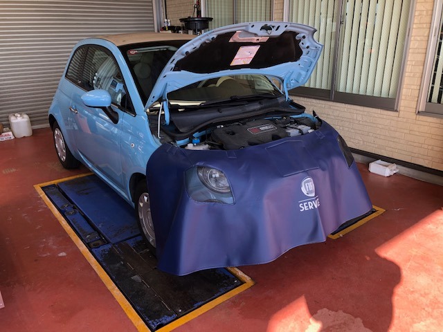 今日のイタリア車🇮🇹FIAT500はクーラント漏れにてレッカー入庫頂きました。加圧チェックするとターボに入るホースから横...