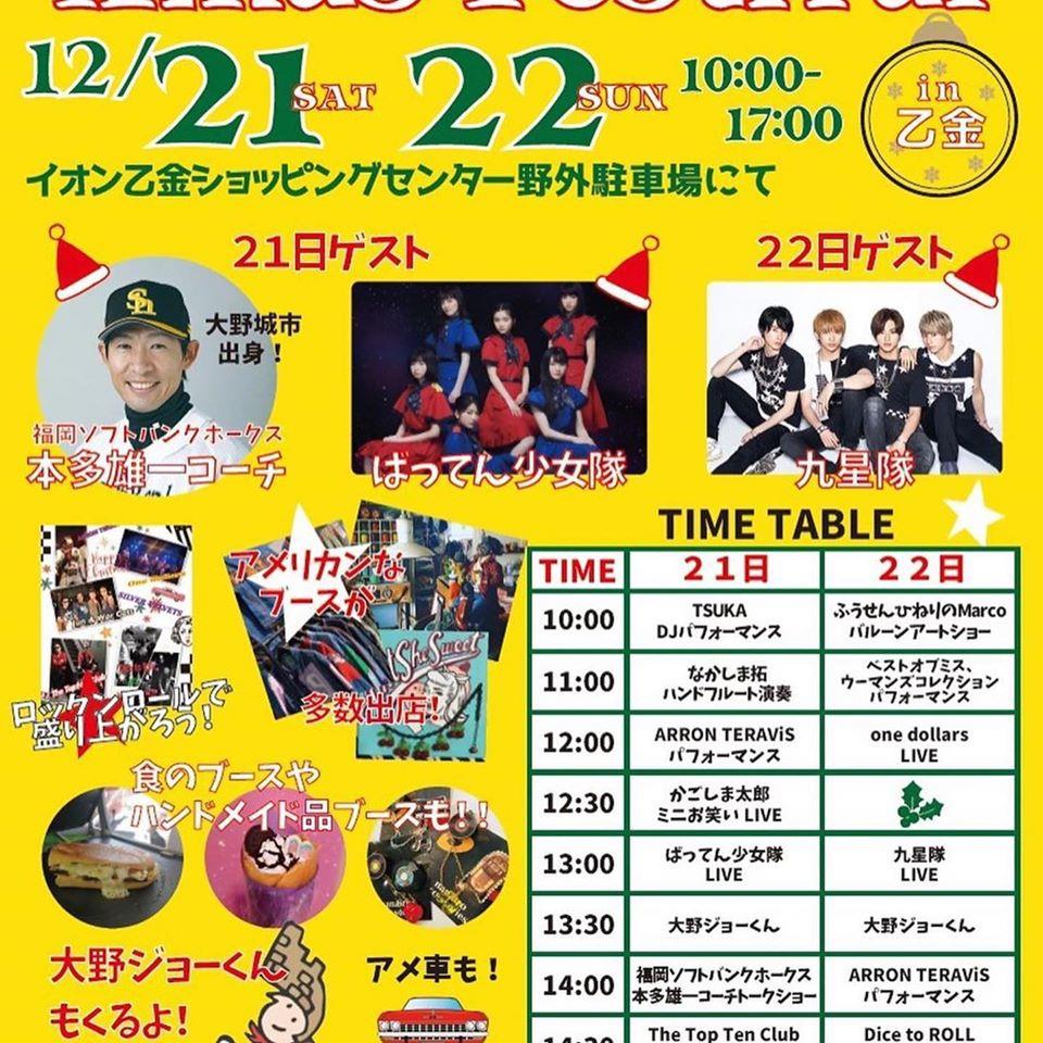 12/21は福岡県大野城市AmericanXmasFestival10時~17時場所:イオン乙金ショッピングセンター(大野城...