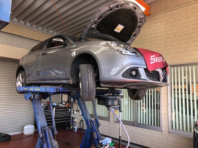 オイル交換入庫!!ALFAROMEOジュリエッタ1750/FIATPANDA共にエンジンオイル、フィルター交換にてご入庫頂き...