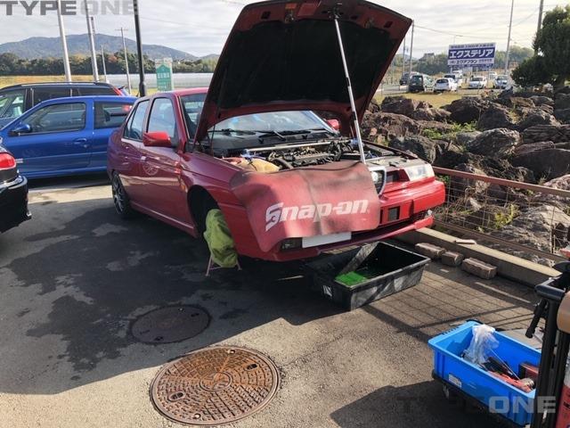 ALFAROMEO155追加の部品を手配して作業を進めます。クーラントはかなり錆が出ておりラジエター内もしっかりエアと水の専...