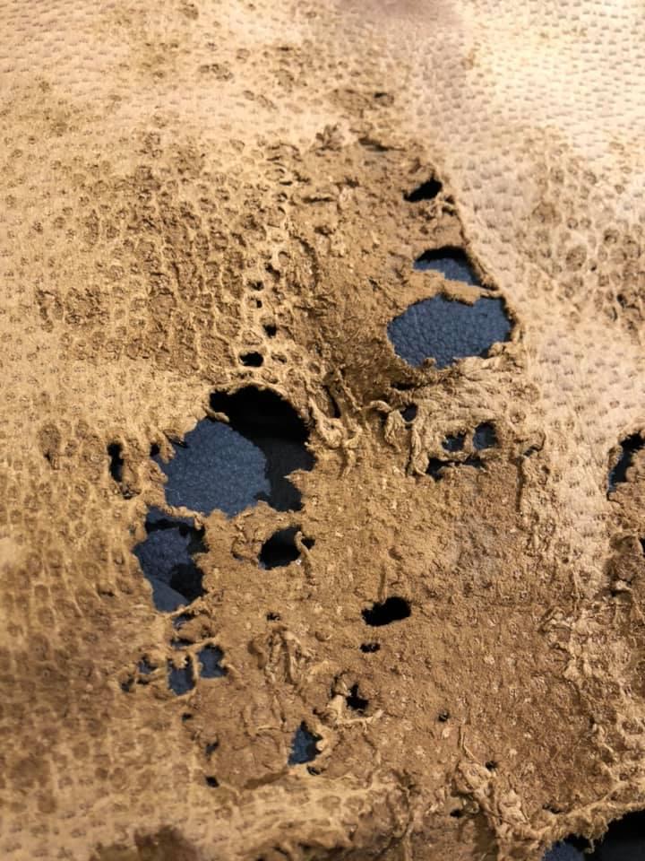 絶句!(´⊙ω⊙`)何も取れそうにない革も。。。オーダーメイドのお問い合わせ、CACAZANグローブのお買い求めはCACAZA...