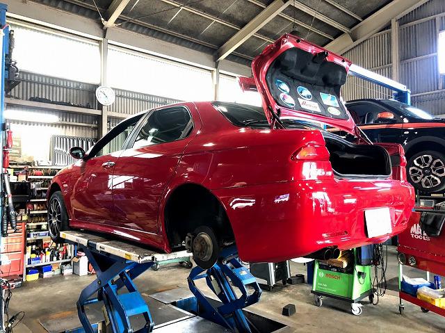 名古屋市のK様のアルファロメオ1562.5V6の入庫ですタイミングベルト&ウォーターポンプ交換ですまだまだ乗り手がいる156...