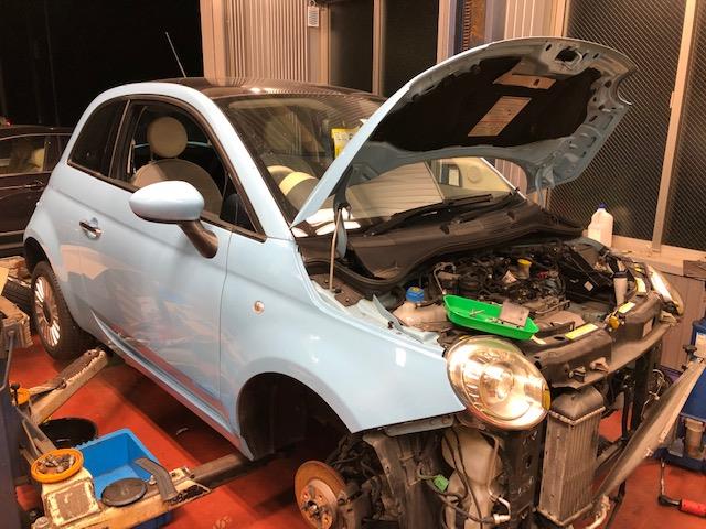 FIAT500の続き朝一でフライホイールの研磨をお願いして他の作業を進めております。クランクリアシールの交換やベルハウジング...