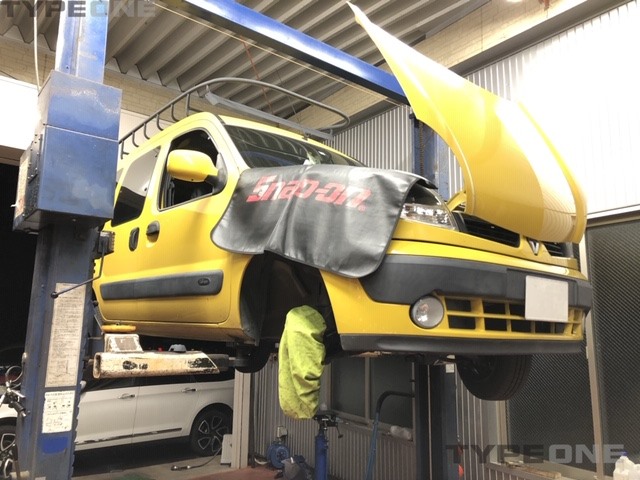 RENAULTKANGOO無事継続検査をPASSして参り、部品も到着してきましたので作業開始です。まずはタイミングベルトから...