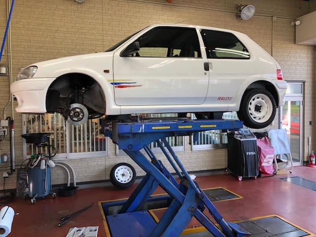 PEUGEOT106RALLYEロアのコントロールアームが到着致しましたので早速作業開始です。室内から固定されているブッシュ...