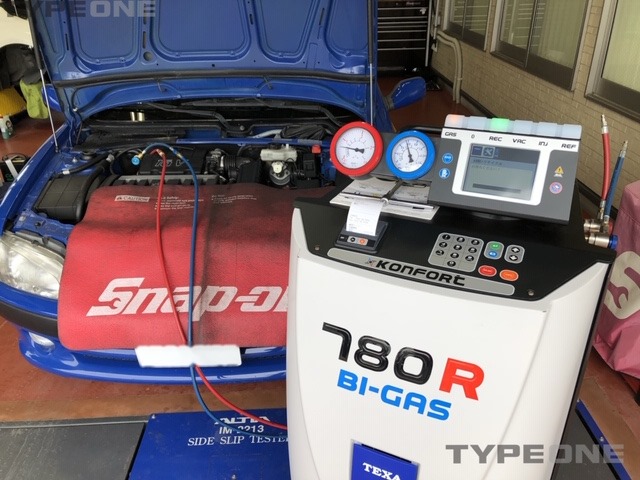 裏庭日記PEUGEOT106S16エアコンリフレッシュにて作業開始。回収ガス量255g/750gバッチリ効くようになりました...