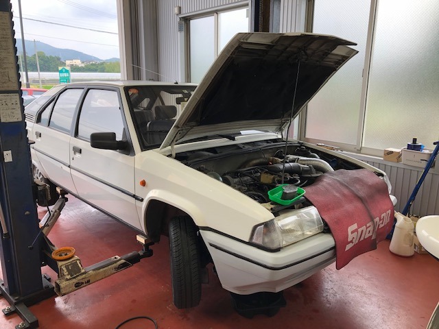 CITROENBXハイドロ高圧ポンプとブレーキマスターシリンダーの交換をスタートです。高圧ポンプはオルタネーターの下にありま...