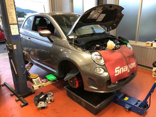 今週もタイミングベルトが続きます。ABARTH595販売が決まった車両です。まずはタイミングベルトの交換からスタートです。S...