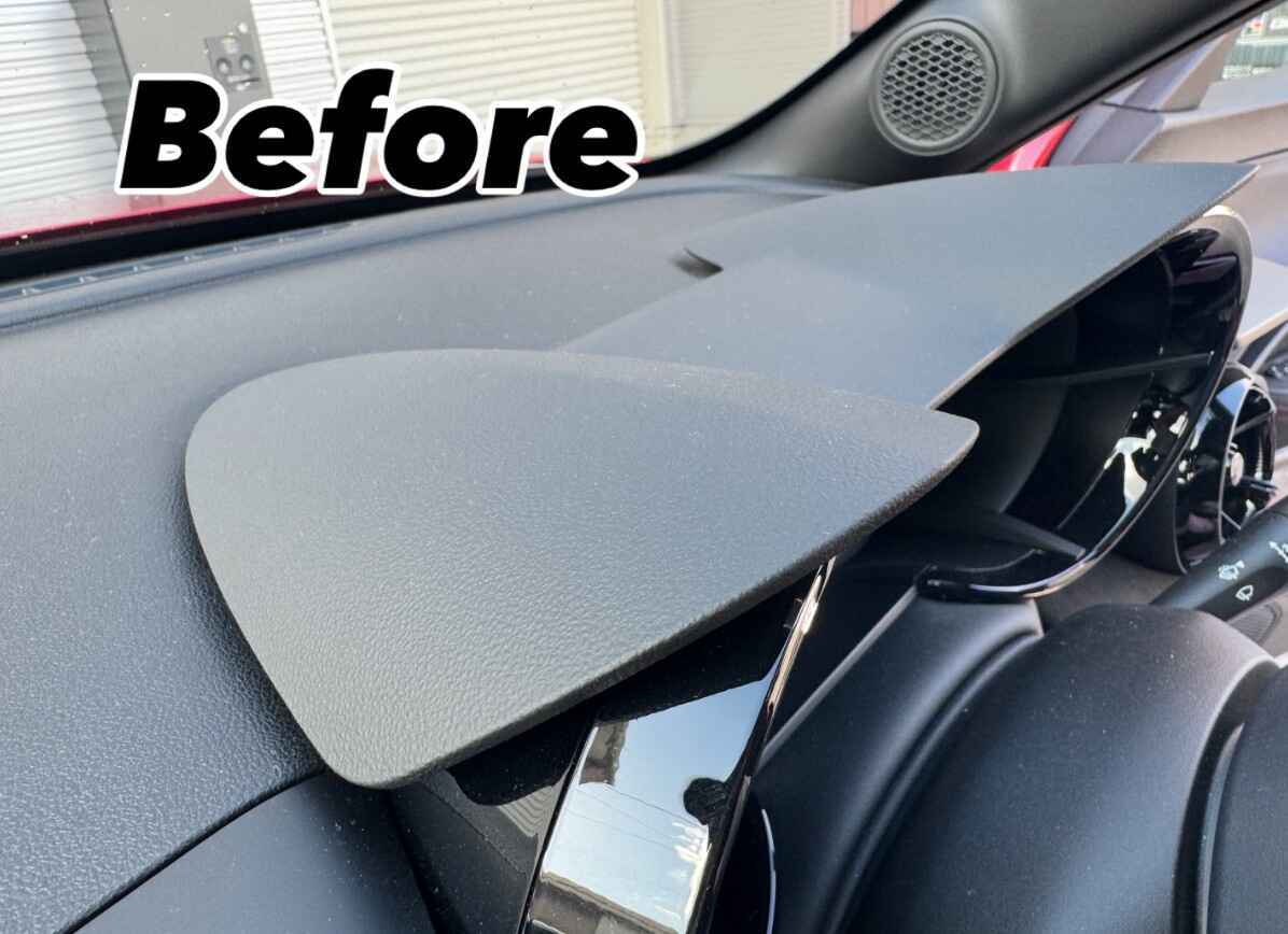 アルファロメオジュニア専用に仕立てたアルカンタラ(スエード)メーターフード。上質な手触りと深みのある質感が、コックピットにラグ...