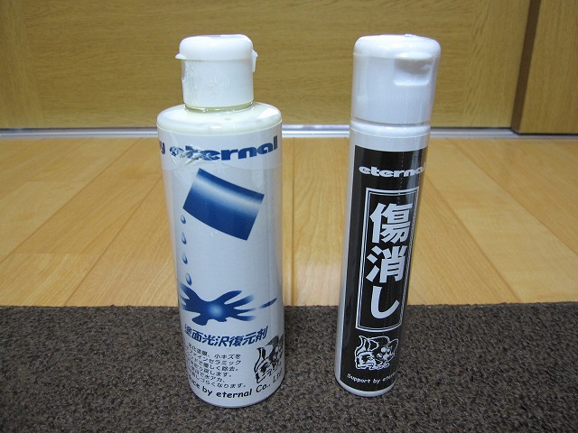 ノーブラシ洗車の後は、ネットで購入したケミカルの施工に掛かります。購入したのはコチラ↓、「マイエターナル塗面光沢復元剤&傷消し...