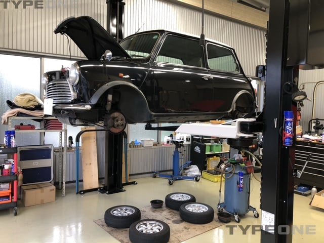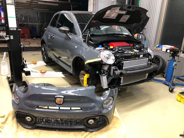 ABARTH595は販売が決まった車両です。新規検査に向けて改善作業を進めておきます。まずは検査を受けます!