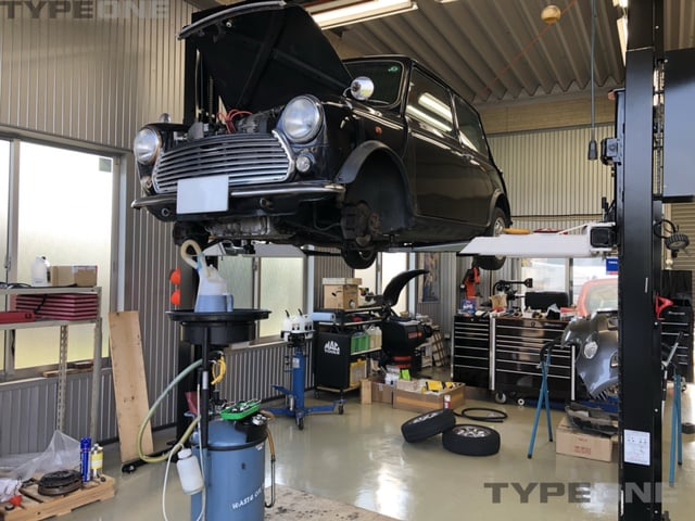 miniはオイル漏れ修理開始です。オイルは交換したばかりですので再使用します。左右のドライブシャフトを外したのですがここでブ...