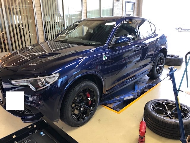 ステルヴィオは納車前にスタッドレスの装着テストインチダウンしましたが無事装着可能です。デザインも似た感じですね
