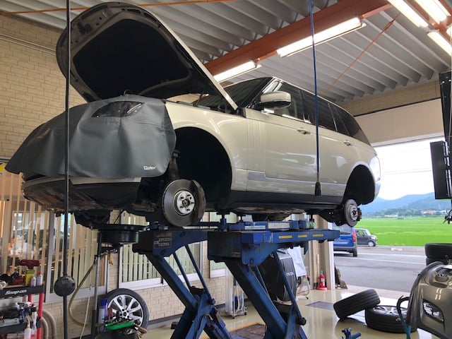 点検入庫が2台LANDROVERのヴォーグとkangooです。ヴォーグは左リアのドライブシャフトブーツからグリスが派手に飛び...