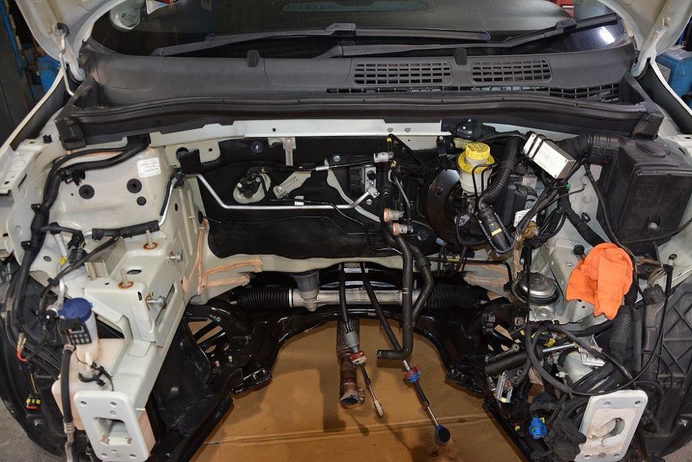 KANGOO2の修理オイル漏れにてサーモハウジングの交換と段差時の異音でリンクロッド左右交換です。結構多い修理ですね。