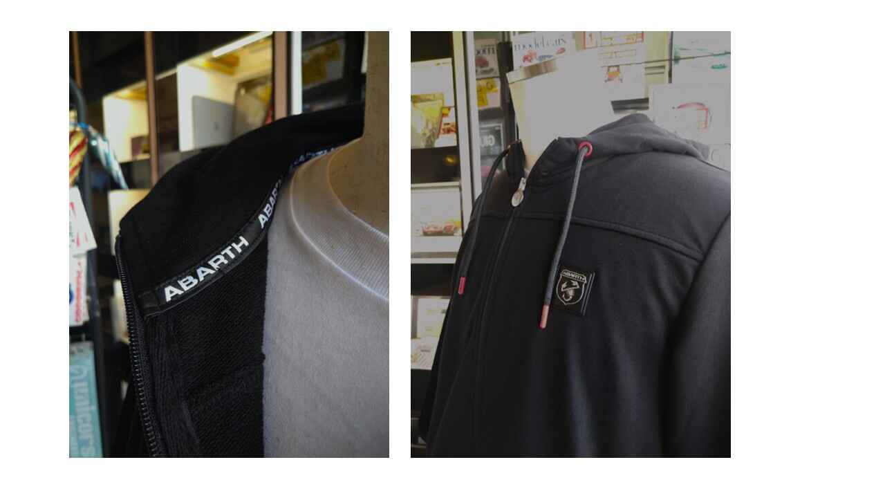 胸元のスコーピオンをはじめ、ジップネックレス、ドローストリング(パーカーの紐)のチップと、細部に渡るABARTHデザインに気分...