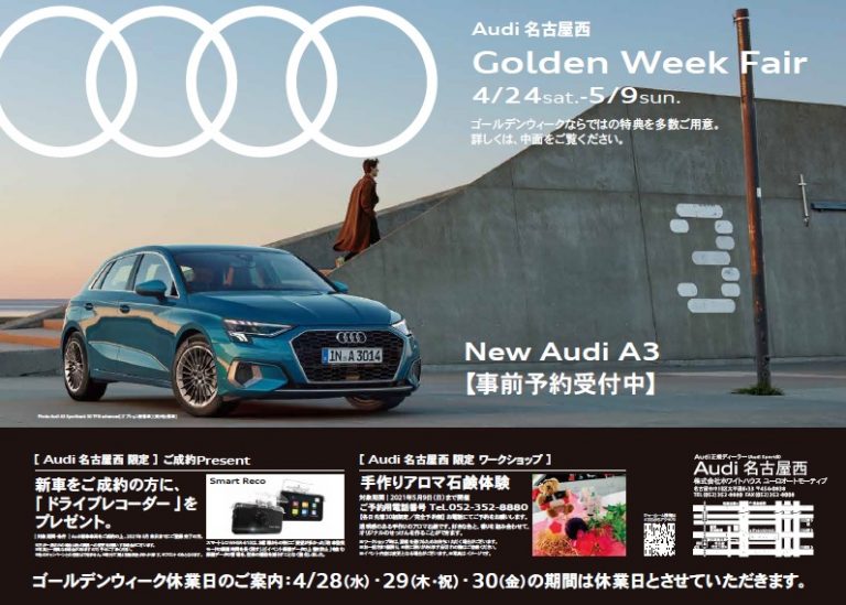 Audi名古屋西です。本日より元気に営業しております。弊社では5月9日(日)までの期間中、Audi名古屋西限定「Golden...