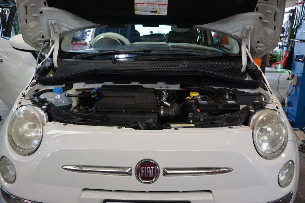 名古屋市のH様のアバルト595の入庫こういった大型連休の日はオイル交換のご依頼が非常に多いみなさんお休みの日なので車のメンテ...