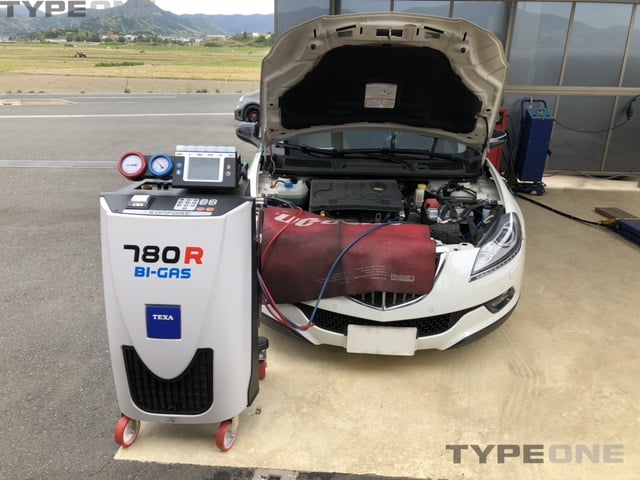 大変な事になっているDELTA内外気切り替えのモーター交換中です。エアコンガスの回収、クーラントの回収して接続を切り離します...