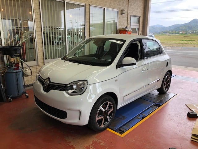 TWINGOは販売が決まったので新規検査に向けて整備中です。エアコン作動点検も実施です
