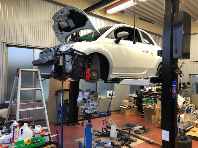 4/22裏庭日記ABARTH500の車検整備続き保証にてタイミングベルト交換完了して折り返しております。エアフィルターやミッ...